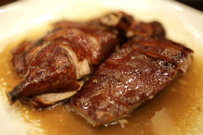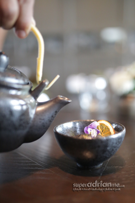 Chilled Avocado and Ginger Soup with Poached Yabbies (S$20). The base of this cold soup is made from exotic Thai Tom Kha using galangal, lime leaf, coriander, lemongrass and coconut milk, giving it a slightly sour yet mildly sweet taste. Avocado puree and chunks are mixed in, for texture and bite. The little crayfish is probably more a photographer’s toy than a gourmet’s.
