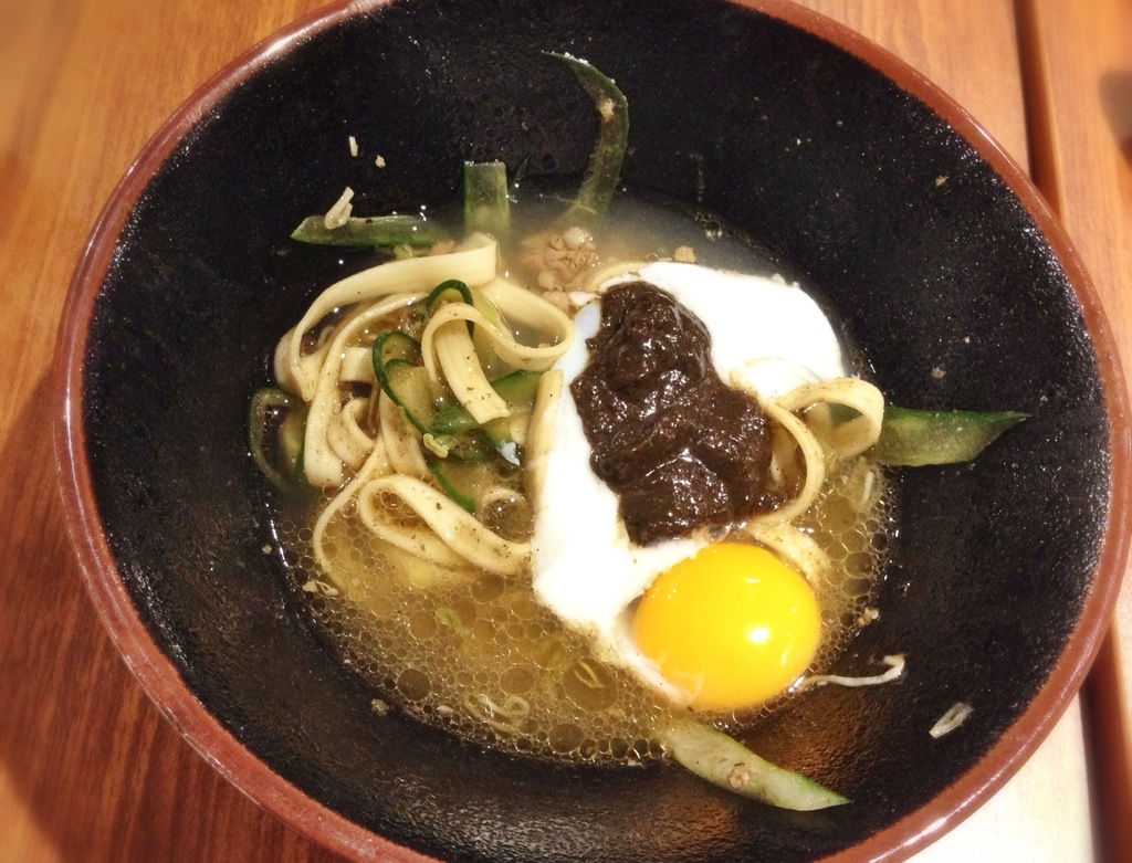 Though we all try to have “less carbo” but what is a meal without carbo. The good thing is the menu serves a relatively small bowl of Jya Jya Men (S$6.50), one of their signature dishes. Thick noodles with minced pork and their special Meso, served dry. But wait… nothing stays dry… after you have savoured half or 3/4 of the noodles, they will then give you a half-boiled egg, more Miso sauce and SOUP, for your noodles. So you get a 2-in-1 experience. Start Dry, end Wet. Haha. Loved it.